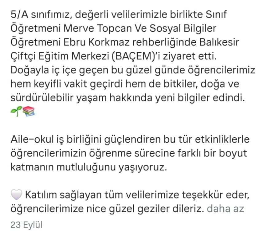 5-A sınıfı Öğrenci ve Velileriyle BAÇEM Gezisi