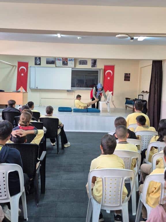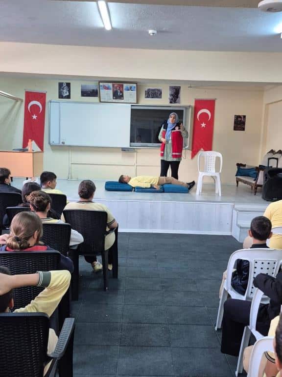 "Çocuklarımız İlk Yardımla Daha Güvende" Projesi kapsamında okulumuz toplantı salonunda Ayşe Akpınar Mesleki ve Teknik Anadolu Lisesi Sağlık Hizmetleri Alan Öğretmeni Hatice Serin tarafından öğrencilerimizin katılımıyla uygulamalı ilkyardım eğitimleri verildi.